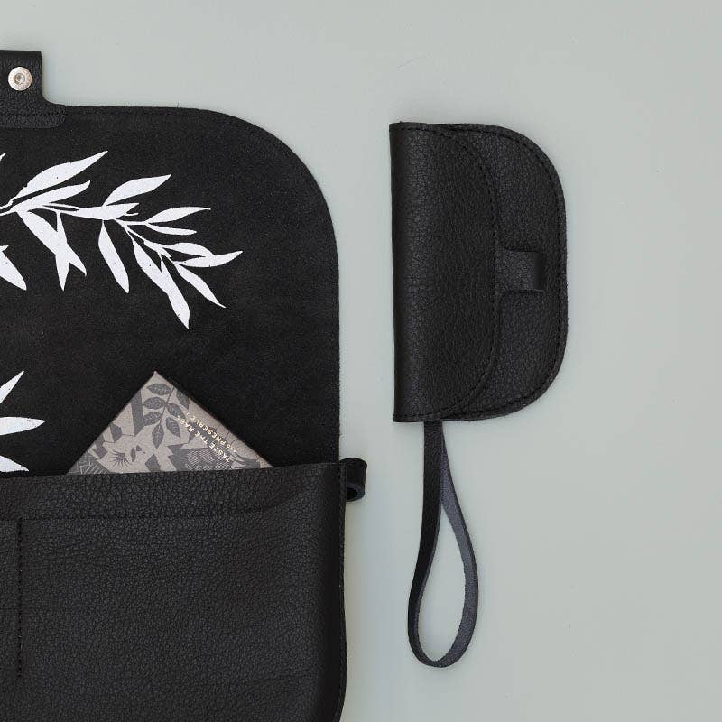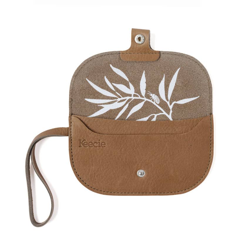 Das kleine Portemonnaie hat zwei Fächer und kommt mit einer kleinen Handschlaufe. Der Olivenzweig im Siebdruck symbolisiert Frieden & Hoffnung.
