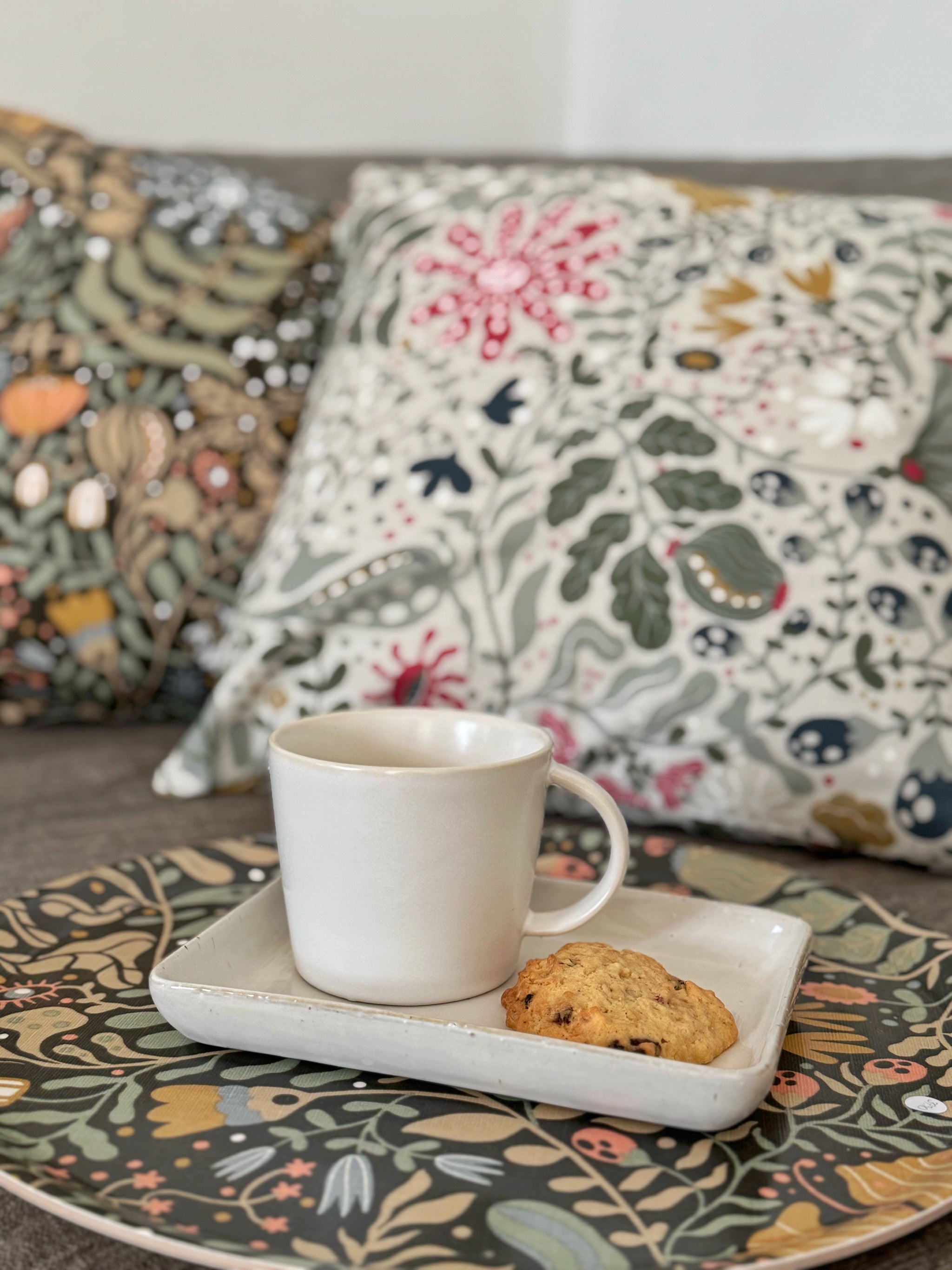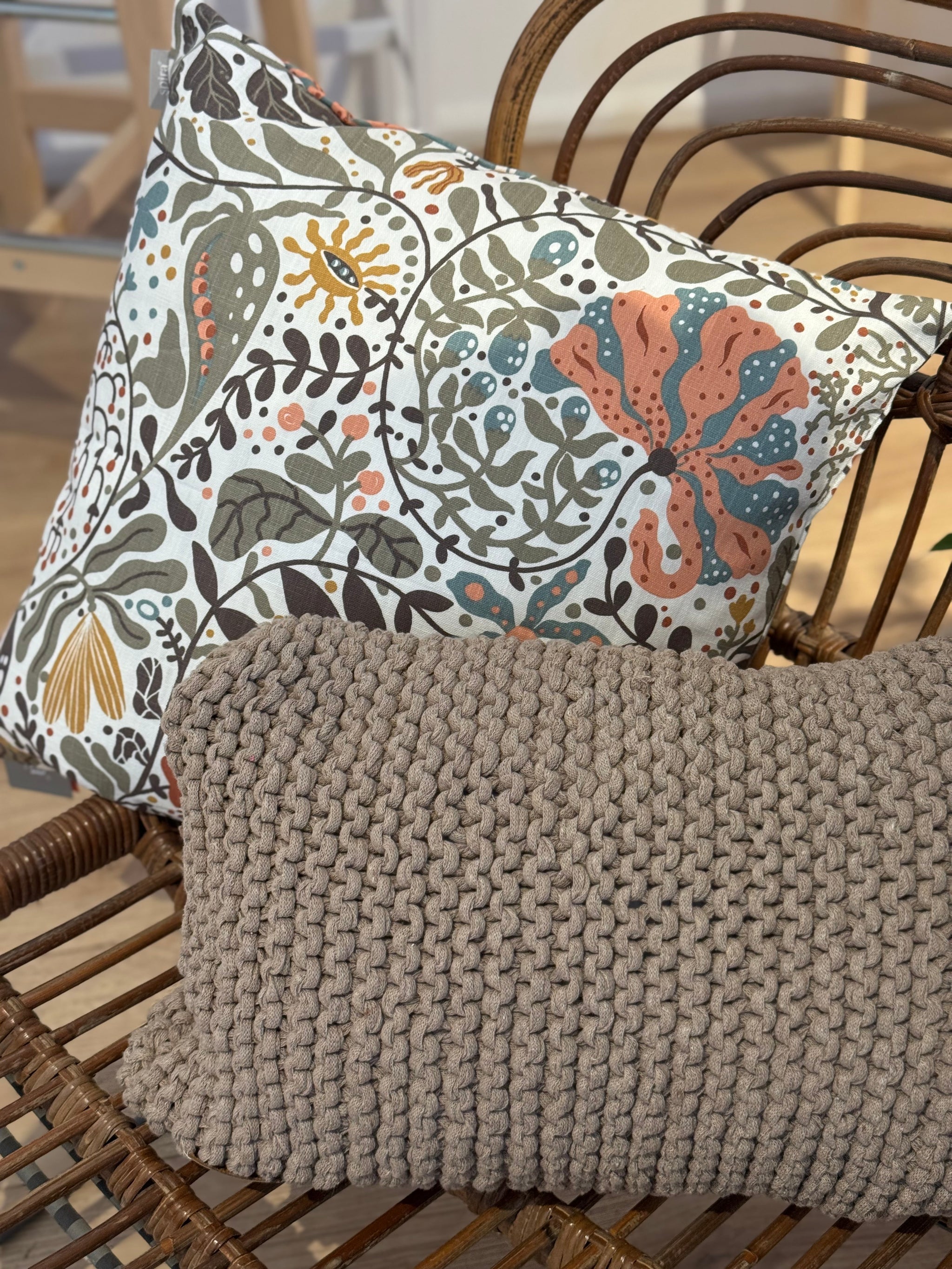 Wunderschöne florale Kissen in zwei Farbnuancen. Schau' dir auch das große Tablett im gleichen Design an - so harmonisch zusammen!